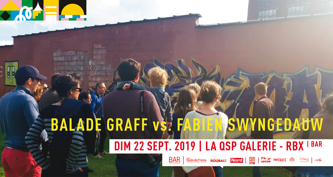 Dans les pas de l’artiste Fabien Swyngedauw et au fil de ses interventions vous approcherez avec d’autres yeux les signes tracés dans l’espace urbain. Du quartier de la gare au centre ville partez à la découverte de ses sources d’inspirations (dessins d’ados, collages fortuits, enseignes peintes à la main, architectures étranges et autres éléments vernaculaires) mais aussi des œuvres des artistes prenant Roubaix pour espace de jeux !